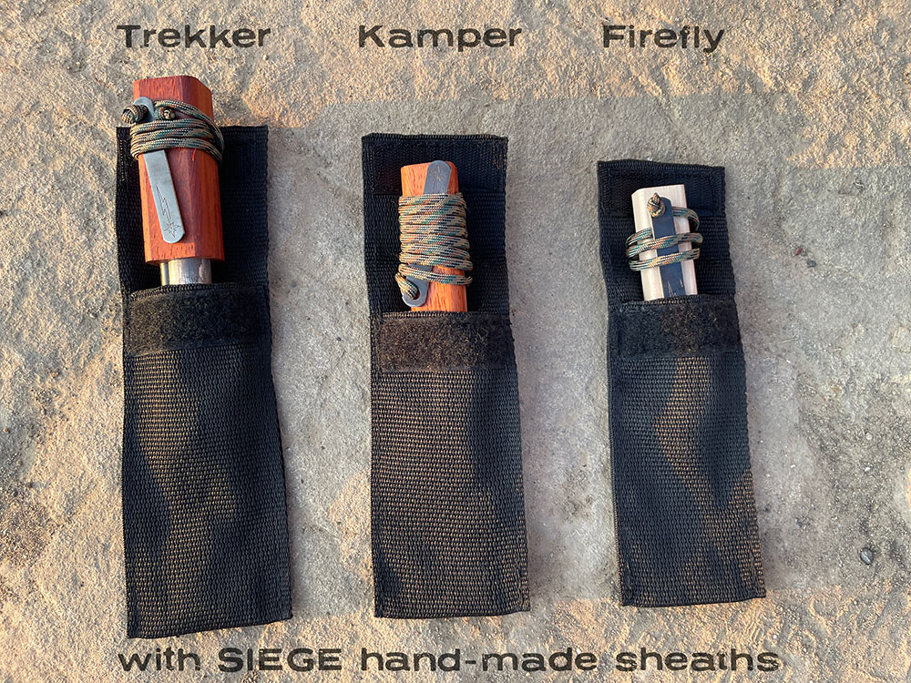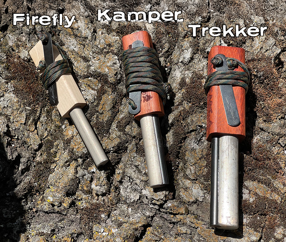 Also check out our hand-made ultra durable sheaths for storing your fire starter! (see below)