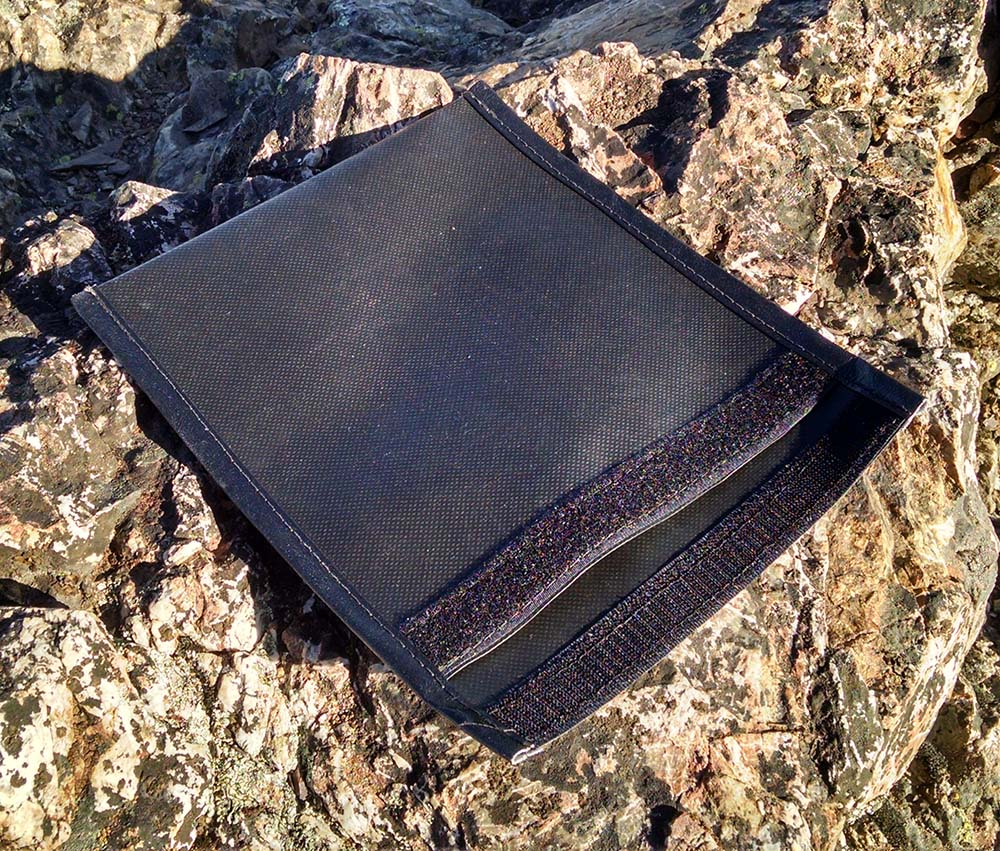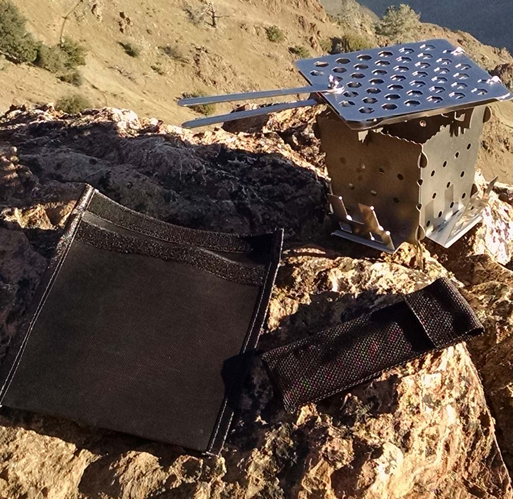 — Provides a protective layer (or cushion if filled with a ZipLoc bag of soft tinder) to kneel or sit on a rugged surface while setting up your stove