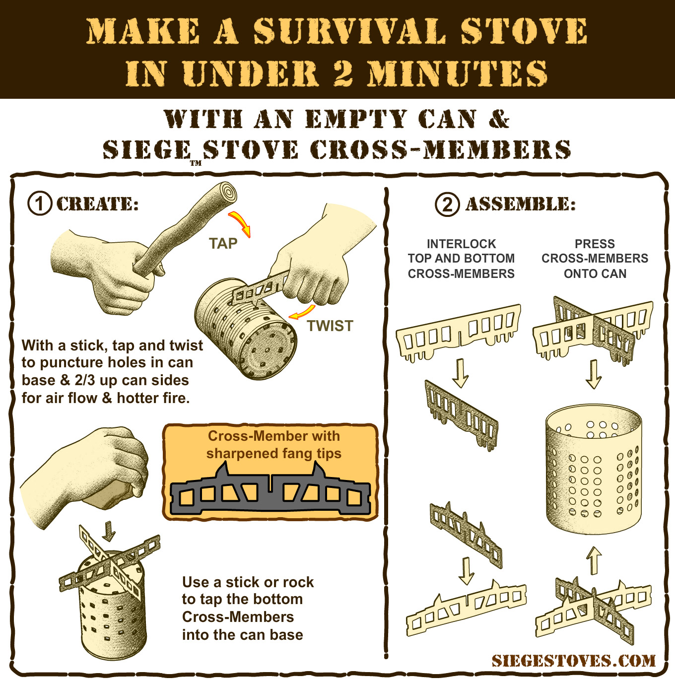 The ultimate all-in-one Survival Stove Creation Tool! An essential addition to every camping kit, bug-out bag and backpack.